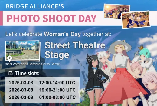 Community photo shoot for International Women's Day! Theme: free form. Location: Asterleeds Street Theater Stage (Line 38). Everyone welcome, invite friends and guildies! No gender restriction.