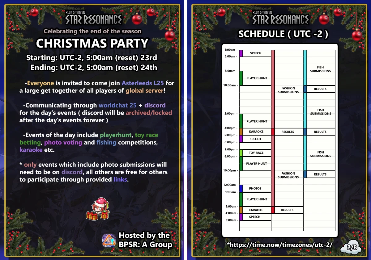 BPSR Christmas Party on Discord: voice stages, games, and holiday hangout. Treated as an all-day community day (Dec 23).